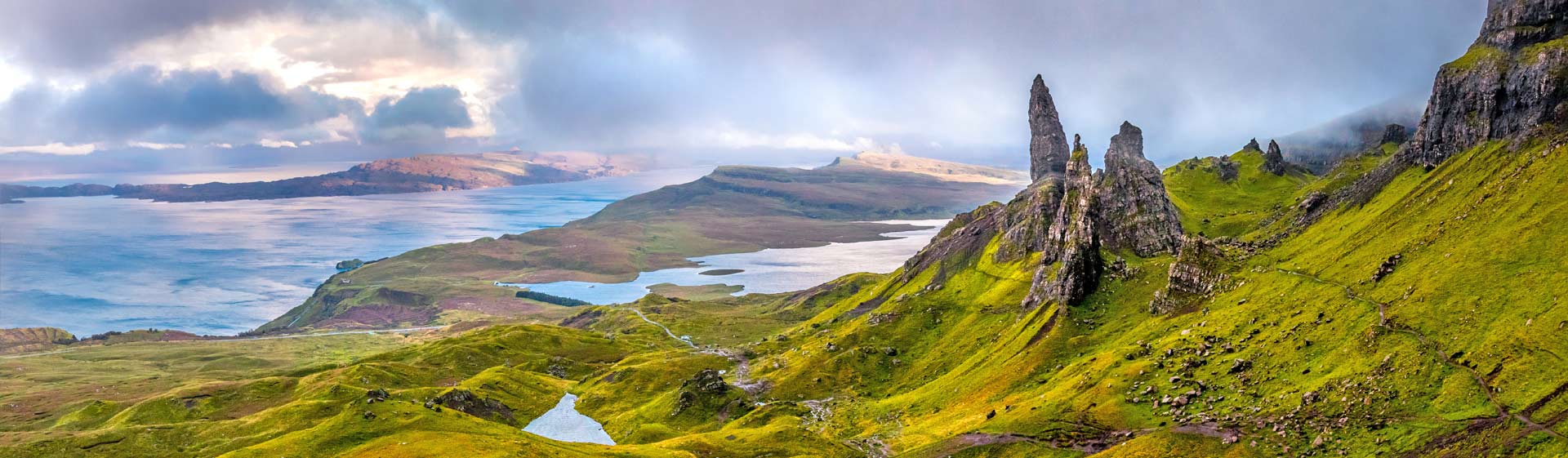 Die Landschaft Schottlands ist von atemberaubender Schönheit. Ein absolutes Highlight ist die Isle of Skye mit ihren dramatischen Küsten und zerklüfteten Bergen. Der Old Man of Storr und die Quiraing bieten spektakuläre Wanderwege und Panoramen.
